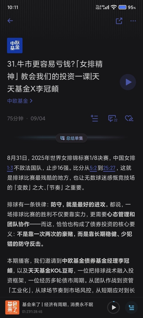 #股债平衡:投资中的攻守道# 在小宇宙上了听了中欧基金的播客,有了一些心得和体会。我平时喜欢一个去操场跑步,“投资是一场长跑,而不是百米冲刺。”这不仅仅是一句格言,更是无数投资者用成功与失败验证出的真理。理解并践行这句话,是走向成熟投资之路的基石。