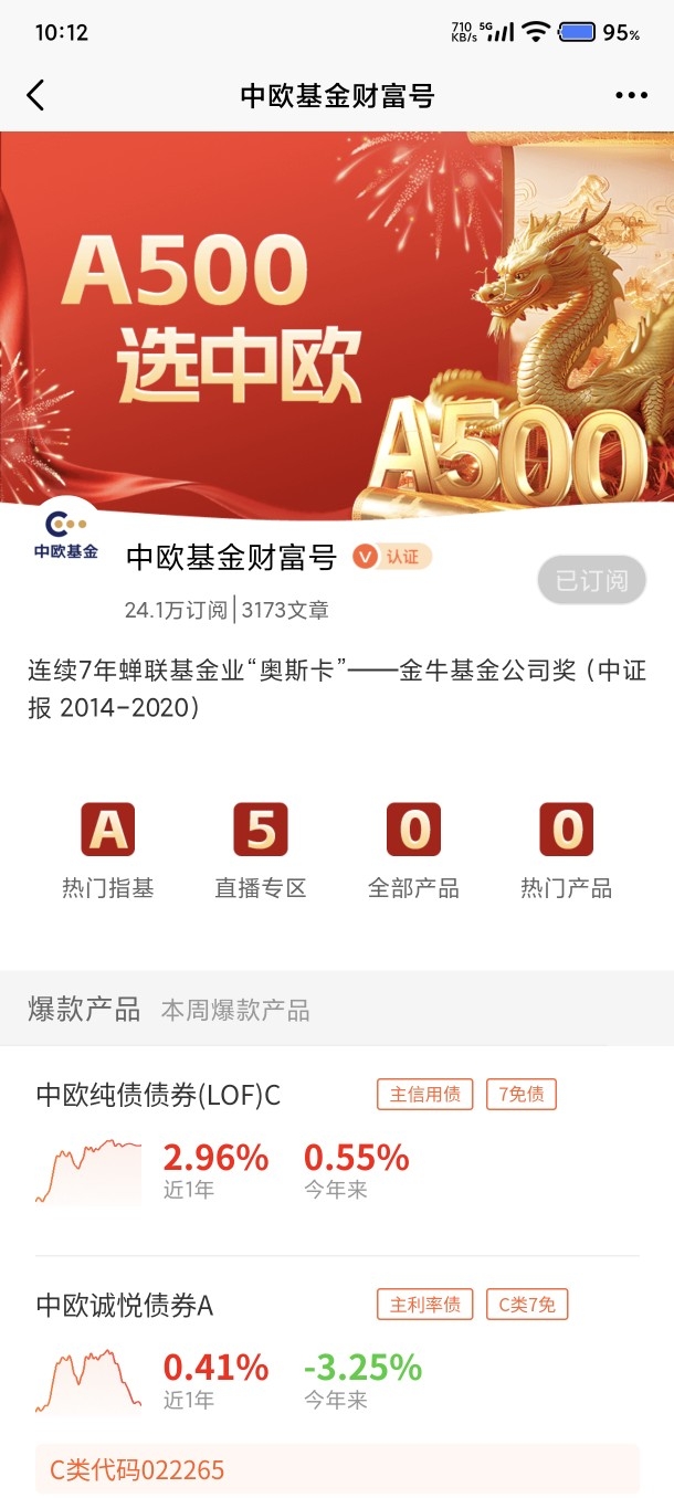 $中欧颐利债券C$ @中欧基金 #晒实盘# $中欧医疗创新股票C$