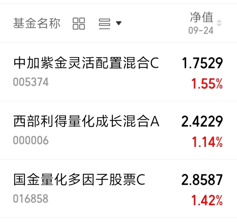 今天中盘量化行情回暖啦,$中加紫金灵活配置混合C$ 也开始上涨了,而且全面挖掘牛市超额标的,牛市来了,机会也多。冲起来啦,$国金量化多因子股票C$ $广发量化多因子混合$