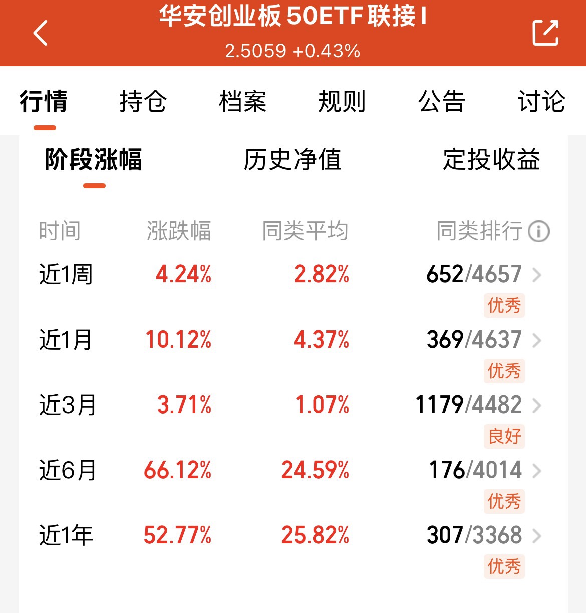$华安创业板50ETF联接I$涨幅太顶了!近半年狂赚66.12%,近一个月涨10
