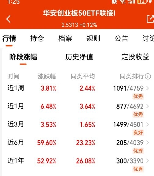 $华安创业板50ETF联接I$ 比科创 50 更能涨,CPO 拔尖费率最低,7 天免赎回,年涨 52.92% 很给力