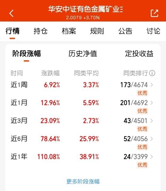 这只有色基太能打$华安中证有色金属矿业主题指数发起式A$近1年翻倍,0折申购,周