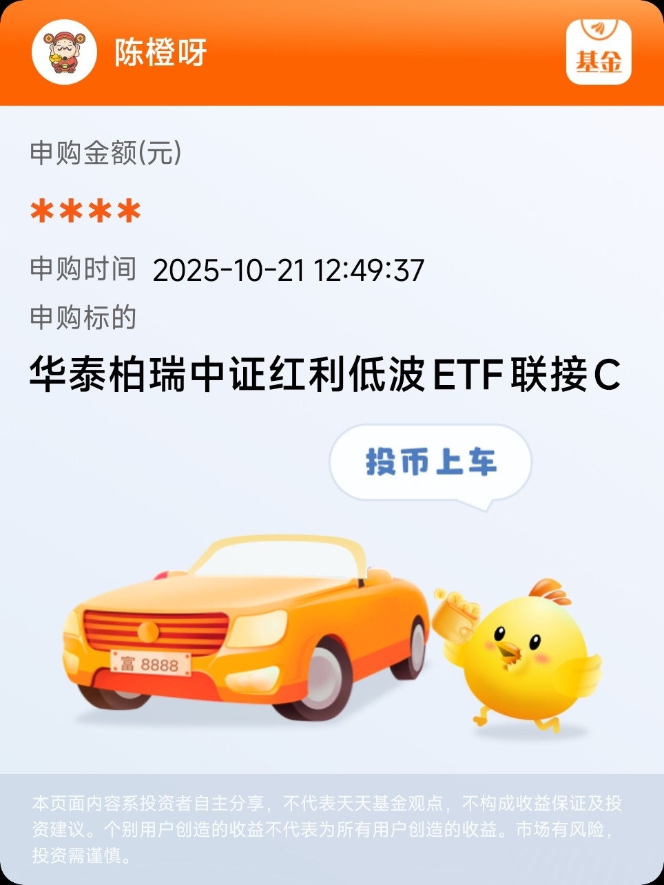 市场一直缩量没活力,没明确主线,四季度求稳,红利得跟上!$华泰柏瑞中证红利低波ETF联接C$ 近一月涨 2.31%,每月分红,连续 25 次没断,防御靠谱还能拿分红,选它准行!