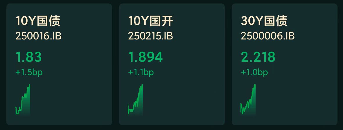 十年期国债收益率:1.83%,+1.5BP(国债收益率越跌,债市越涨)
