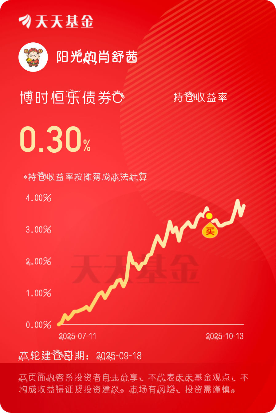 这波债市回暖,$博时恒乐债券C$ 抓住了机会,又给了一个大惊喜,昨天爆了29个大蛋,近三个月收益超3.7%,半年涨幅稳稳的站在了7%以上,在同类里收益表现十分优秀。最近债市回暖的核心动力之一是信用债市场的修复,基金经理本来就擅长信用债精细化筛选,基金里的高等级信用债占比不低,现在长短端AAA级信用利差都在收窄,光票息收益就很可观。再加上10月政府债供给压力小了,资金面宽松,债券估值自然往上走,这只基金的债券底仓直接躺赚。再看其权益仓的布局,更是体现了老将功力,三季度加仓了半导体和电子股,刚好赶上最近的科技板块修复,博时本身在半导体领域的投研就很强,选的标的都是有业绩支撑的硬科技股,不像那些炒概念的基金波动那么大。且这基的费率优势很适合喜欢灵活补仓的人,上个月趁市场调整我加了点仓,现在收益嘎嘎香。且它的权益仓位占比不到20%,风险可控,既能赚超额收益又不怕套牢,关键波动小,拿着省心。#OpenAI联手博通!AI产业链怎么投?# #晒收益#