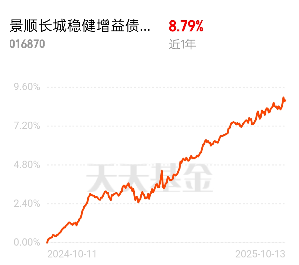 $景顺长城稳健增益债券C$ 历史涨幅还是挺不错的,收蛋能力还是挺强的,跟上一波了