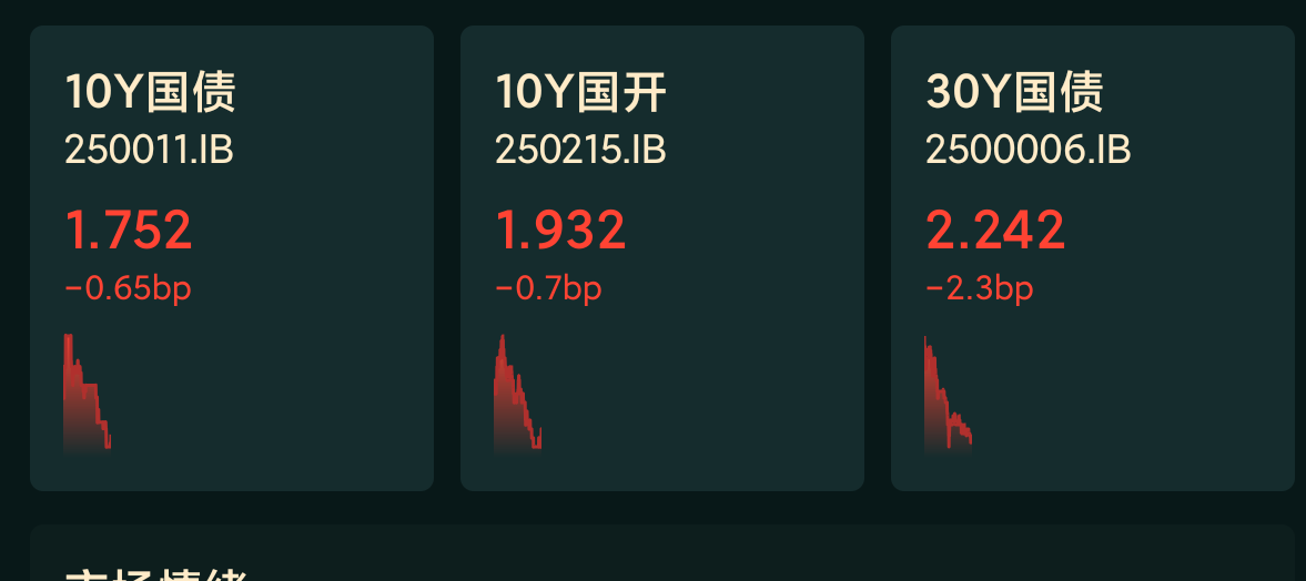 十年期国债收益率:1.752%,-0.65BP(国债收益率越跌,债市越涨)