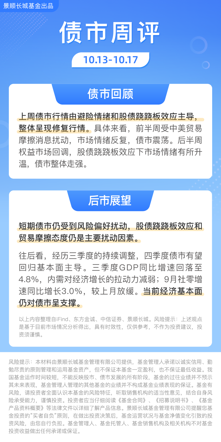 上周债市行情由避险情绪和股债跷跷板效应主导,整体呈现修复行情。进入四季度,债市将如何演绎?债市周评为你解读~