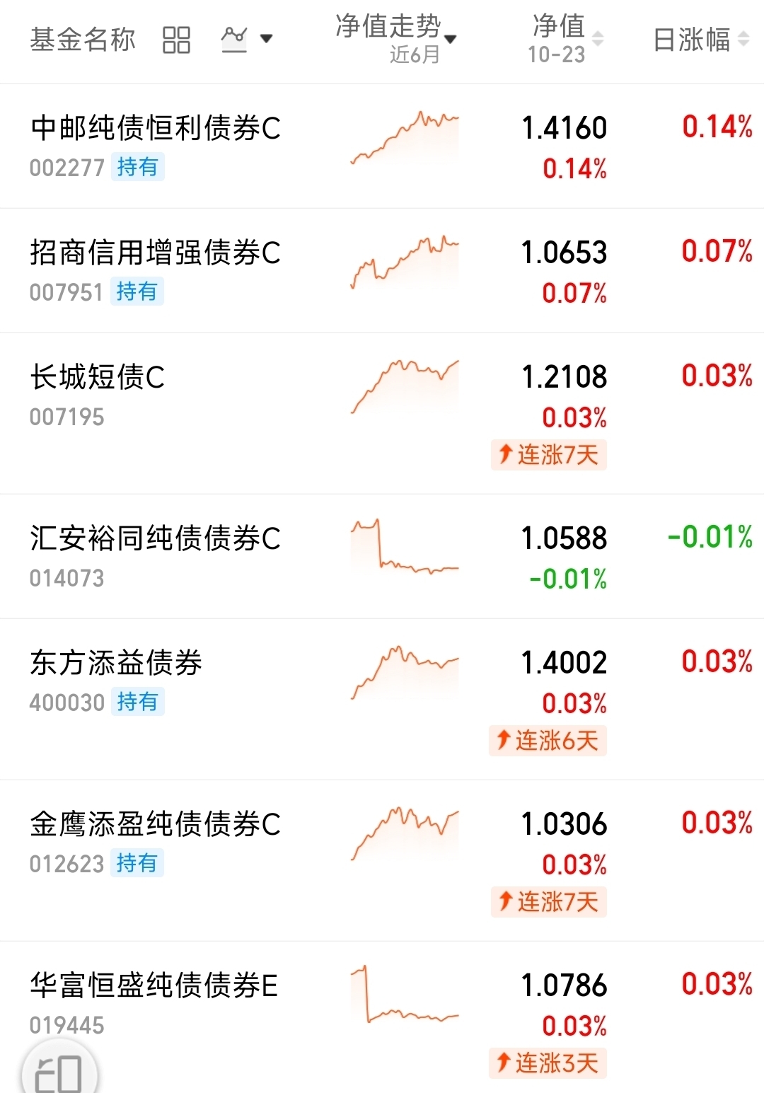 近一年拿1000多枚蛋、业绩一直优秀的$中邮纯债恒利债券C$ ,今天又收14个蛋爽歪歪。只投可转债和纯债波动小,0.3%管理费在混债里超划算。