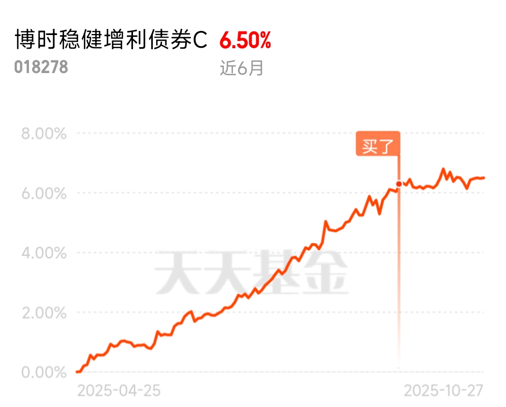 近期债市缓慢回升,$博时稳健增利债券C$ 昨天又收蛋了。这基一周就收了三四十个蛋,半年累积下来,囤蛋650个,在如今复杂市场环境里净值一路稳升,持续收益能力十分出色。近期市场避险情绪升温。中美经贸摩擦最近有新变化,美方表述反复,从10月底的APEC峰会到11月初的关税政策,都充满不确定性,资金肯定更愿意往债券这种安全资产里躲。博时稳健增利持有的债券以高评级信用债为主,短端品种占比不低,近期短端信用债收益率下行,信用利差也在收窄,这部分持仓也赚了不少。再加上它的权益仓配置特别聪明,没有追高前期热门的科技板块,而是配了不少港股通里的高股息股。上周科创50下跌,但港股里的消费股反而很抗跌,刚好平衡了风险。这基“短债+高股息权益”的组合,在避险行情里简直是绝配,既能靠债券拿稳定收益,又能靠权益赚点超额收益。而且这基流动性很好,没有申购费,持有超过七天还免赎回费,急用钱时方便赎回,到账也特别快,拿着稳赚还灵活。#党的四中全会审议通过“十五五”规划建议# $博时稳健增利债券C$
