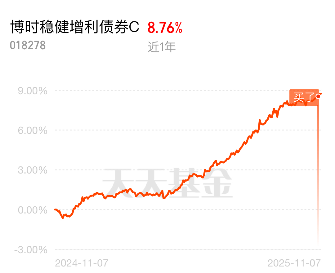 上周五债市一片绿,但$博时稳健增利债券C$ 逆风收蛋4个,够硬!上周收蛋30多个,半年涨幅稳稳站在了6%以上,实力肉眼可见。这只基金的核心优势的是,既吃透了债市的政策红利,又抓准了权益市场的热点机会。四季度债市迎来一个重要的利好,年末机构“抢跑”行情。根据市场规律,每年11-12月,农商行、保险这些机构都会提前布局跨年配置,而且今年宽信用预期扰动减弱,机构抢跑的意愿更强烈。这基的债券持仓以中短久期为主,刚好契合了机构的配置需求,中短久期债券流动性好、波动小,而且在资金宽松环境下,骑乘策略能赚不少收益。再加上它的权益仓位虽然不高,但选股眼光毒辣,提前布局了消费复苏和生物医药板块,踩中了10月以来的市场热点。比如持仓里的贵州茅台,近期股价稳步回升;还有药明康德,受益于创新药政策支持和海外订单增长,业绩拐点显现。它还配置了部分消费类转债,比如南航转债、盛航转债,这些转债兼具债性和股性,在消费板块反弹时能放大收益,在市场下跌时又能靠债性护盘。这种 “消费龙头+创新药+转债增强”的权益配置,既保证了稳定性,又有足够的弹性。#科技小登大揭秘#