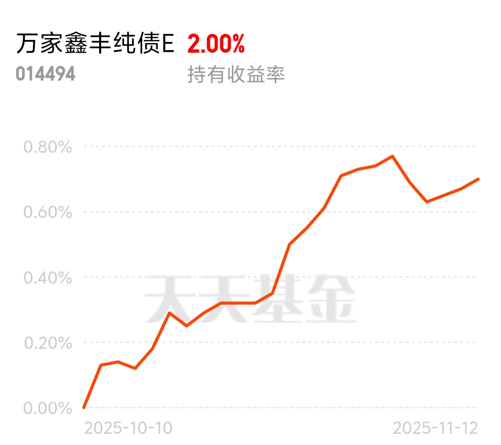 还是挺认可底层资产的,配置稳定性高,优势明确。拿着真的不错$万家鑫丰纯债E$