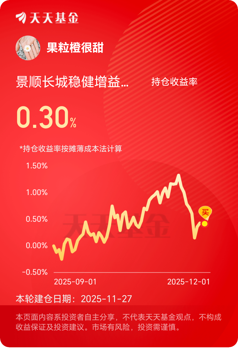 拉长时间看,小幅但持续的收蛋比大涨大跌更踏实。$景顺长城稳健增益债券C$ #晒收益#