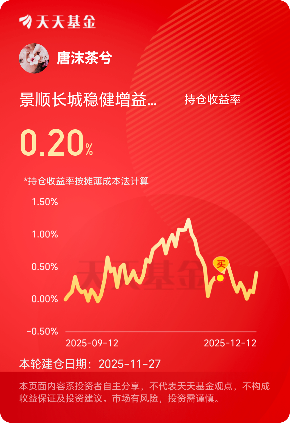 年底了,市场波动大,还是固收+稳妥点。$景顺长城稳健增益债券C$ #晒收益#