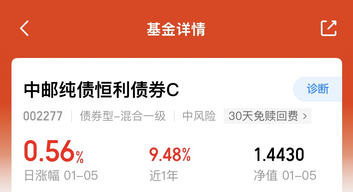 今天带着$中邮纯债恒利债券C$的56个蛋,活力满满的干了一天,终于结束搬砖,要继