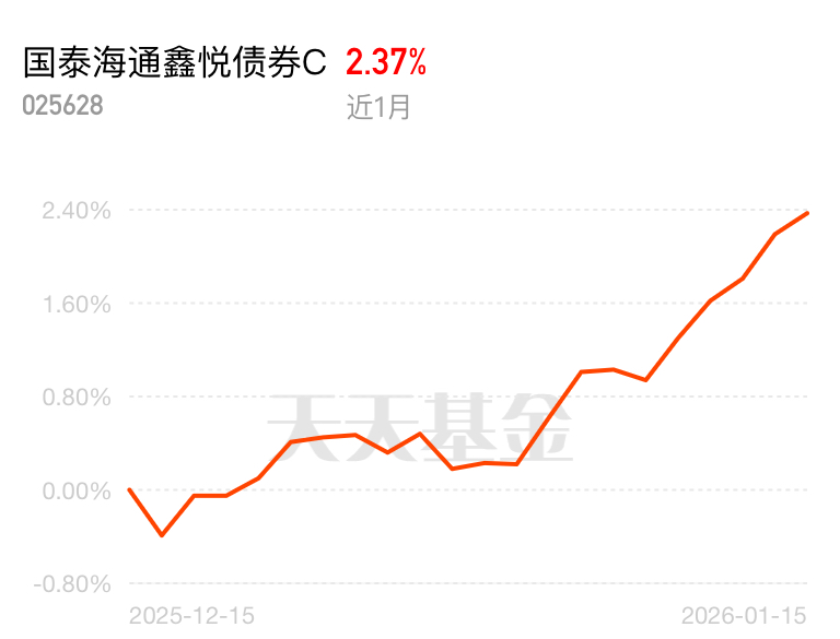 2026 年一开年贵金属就炸了,黄金冲破 4600 美元 / 盎司创新高,妥妥的贵金属大年。国泰海通鑫悦债券 C 踩着风口搞贵金属 + 固收策略,昨天稳稳收 8 个蛋,近一周更是攒了 142 个蛋,稳健选手闭眼冲不踩雷。$国泰海通鑫悦债券C$