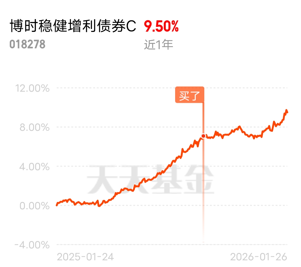 最近市场在高点晃荡,债市倒是有点暖意,固收+展现了很好的韧性。$博时稳健增利债券C$ 债券打底收利息,股票部分主要投些金融、有色这类龙头公司,争取多赚点。一周攒下了71个蛋,半年涨了5.3%,这表现很亮眼。近期利好不少,央行1月不仅下调了再贷款利率,还特意增加了4000亿元科技创新和技术改造再贷款额度,总额度达到1.2万亿元,而且从2026年起,研发投入高的民营中小企业也能享受这项政策支持。这项政策对债基来说,简直是超级大利好!科技创新再贷款额度增加,会引导金融机构加大对科技企业的信贷支持,这基的债券仓位中,配置了不少科技类中小企业的高等级信用债,这些企业获得政策支持后,经营稳定性提升,信用风险降低,债券收益自然更有保障。而且它的权益仓位最近精准踩中了券商板块的风口,最新持仓里有中信证券、华泰证券、国泰海通这些券商龙头股,最近券商板块迎来了多重利好。一方面,央行深化金融开放,优化人民币跨境使用政策,市场交易量持续提升,券商的经纪业务和投行业务都能受益;另一方面,国际投行集体看多中国经济,高盛、瑞银都表态要加大对中国资本市场的配置,外资流入会直接带动券商股估值修复。#金价盘中突破5100美元大关!机构猛吹#