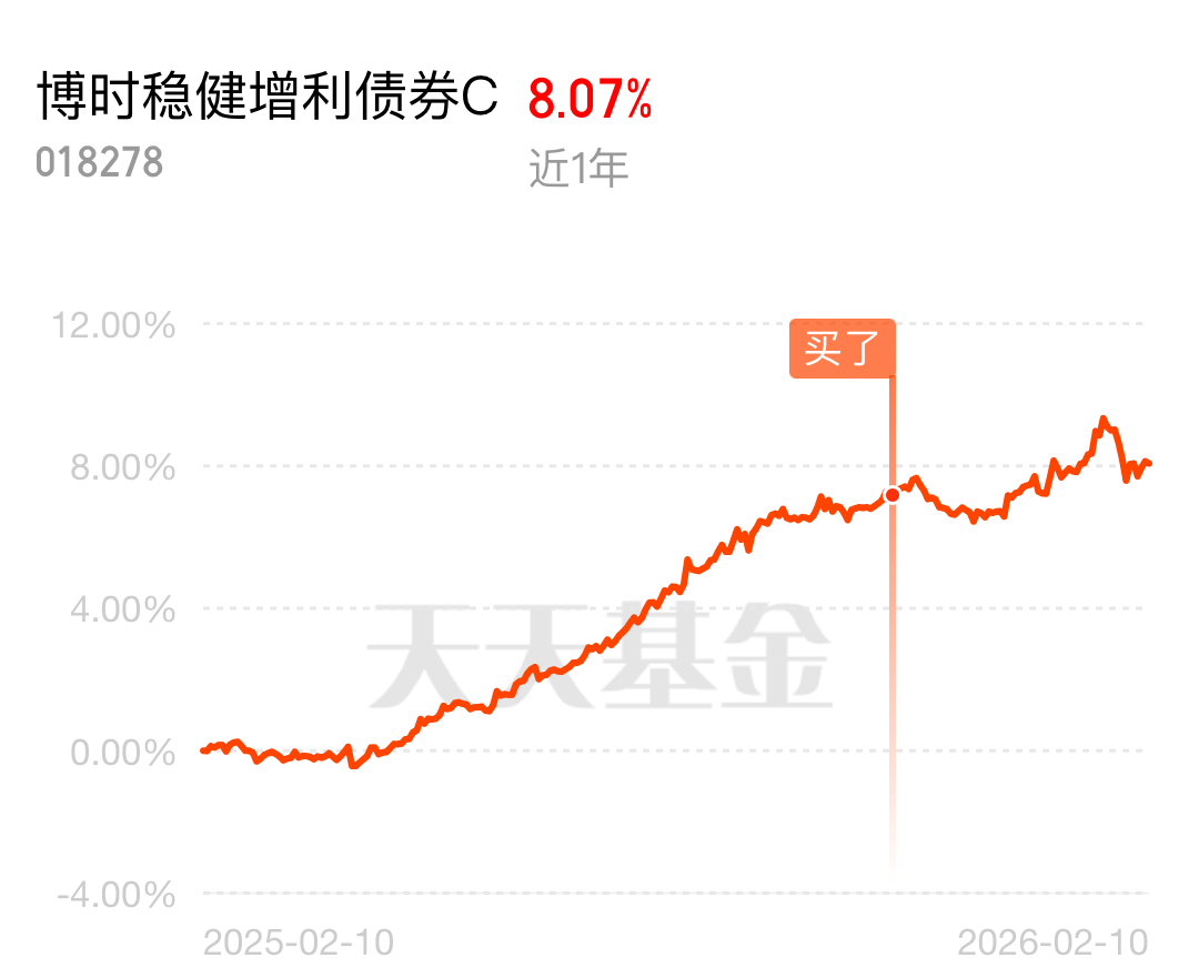 债市没啥波澜,股市在4100点反复试探的行情下,固收+股债混搭的策略,配置价值高。$博时稳健增利债券C$ 债为主、股为辅,走得稳也能跟上涨。近一年800多个蛋的业绩,长期拿着很安心。春节前央行大放水呵护流动性,2月5日、6日,央行连续两日开展14天期逆回购操作,累计净投放6000亿,专门为春节前后的资金面平稳保驾护航。通常春节前后,市场资金容易紧张,资金价格上涨会导致债券价格波动,这波央行的逆回购操作,相当于给市场补充流动性,让资金面保持宽松,债券就不会因为资金紧张而出现净值下跌,反而能稳稳拿到收益。它的权益部分更是锦上添花,前十大权益里有中国平安和中信证券,这两只个股最近简直是站在了风口上。中国平安作为保险龙头,2025年三季报归母净利润就有91.57亿,业绩稳步回升,而且近期保险行业复苏迹象明显,保费收入持续增长,估值又处于低位,向上空间不小。再有中信证券,作为券商龙头,近期券商板块迎来潜在政策利好,注册制改革持续推进,券商的投行和经纪业务都能直接受益,后续随着市场活跃度提升,券商股的涨幅可期。且这基的权益仓位不高,不到20%,既能靠权益仓赚超额收益,又不会因为个股波动过多影响整体收益。#2026我的新年投资计划#