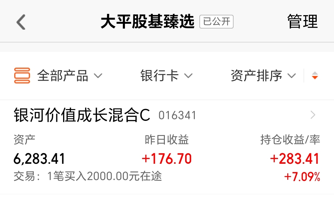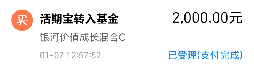 今天我买入$银河价值成长混合C(OTCFUND|016341)$2000块钱。