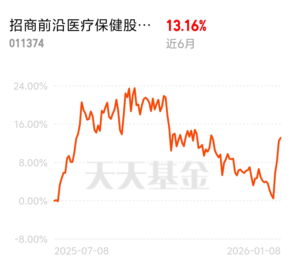中药创新药审批加快,保护期延长,本土优势赛道迎来新发展。招商前沿医疗保健股票 C 近 6 月 13.16%,昨天涨 0.64%,近 1 周 12.61%,覆盖多元医疗领域,分散风险更稳妥。$招商前沿医疗保健股票C$