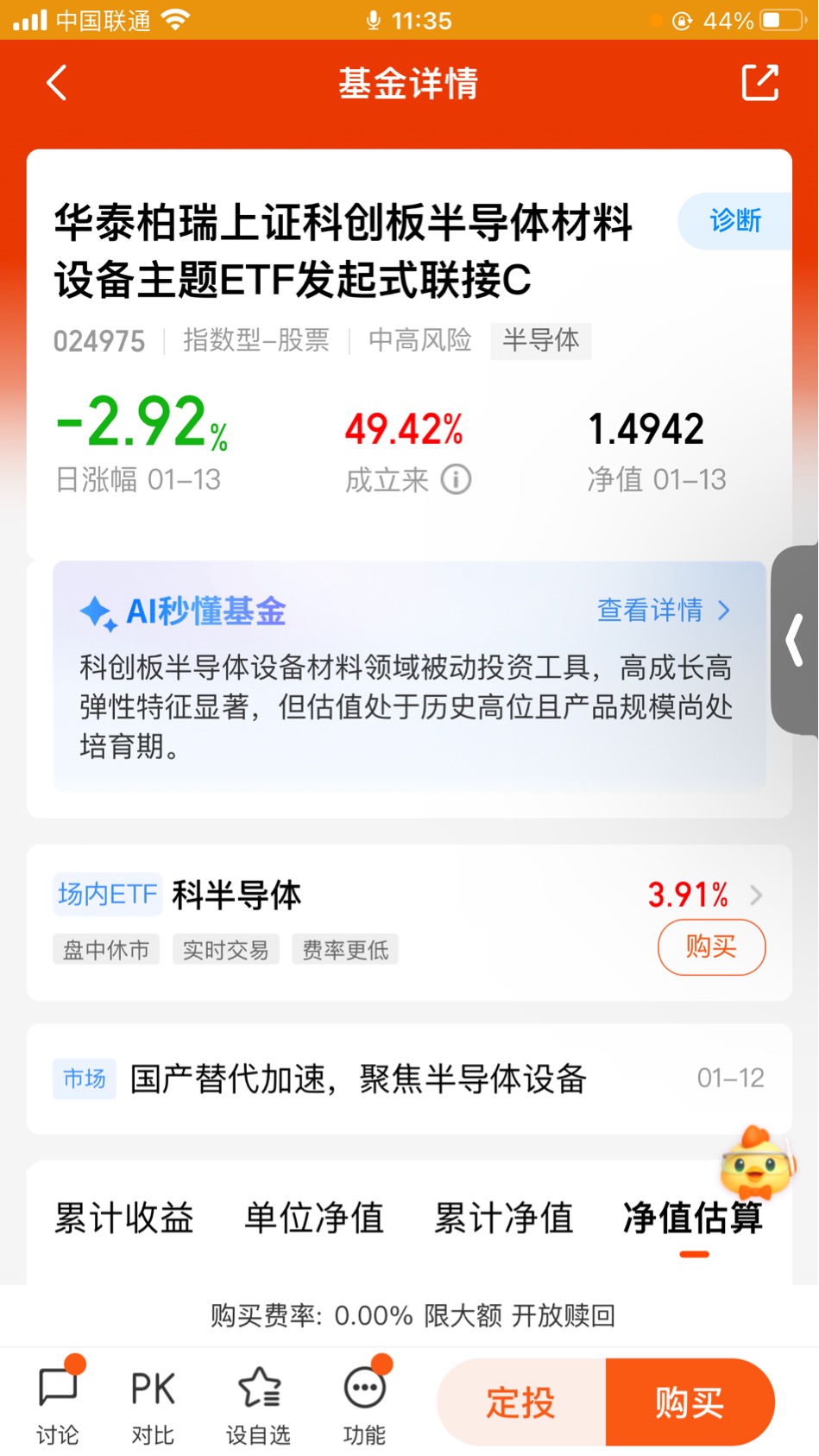 今天科创半导体设备板块的行情让我有点懵,华泰柏瑞的科创半导体产品也跌了2.92%