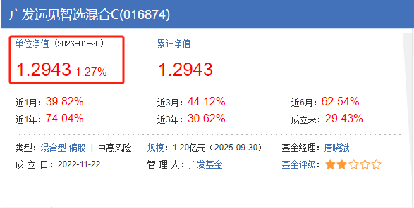 从昨晚美股到今天的A股,存储概念的传导效应非常明显,A股存储芯片板块也应声领涨。广发远见智选在存储领域的提前布局,在今天这样的市场环境下就显得格外有优势。这只基金近期的表现已经非常亮眼,近一个月涨幅超过38%,近一年涨幅高达72.25%。尤其是在昨天半导体市场整体调整时,它依然逆势上涨,显示出了强大的韧性和主动管理能力。