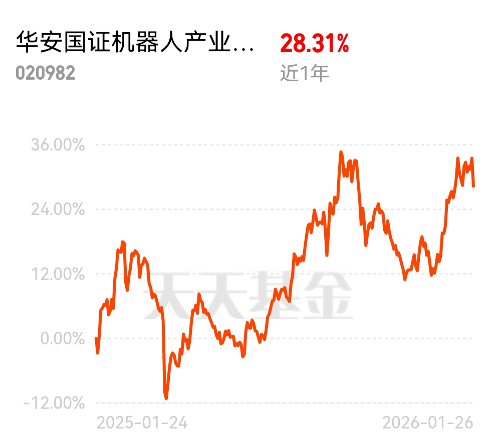 $华安国证机器人产业指数发起式C$机器人核心赛道,近一年涨28.31%,赛道弹性