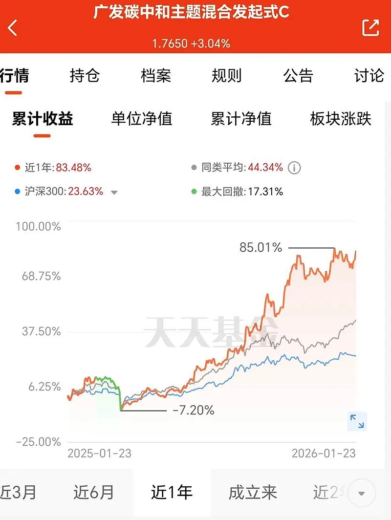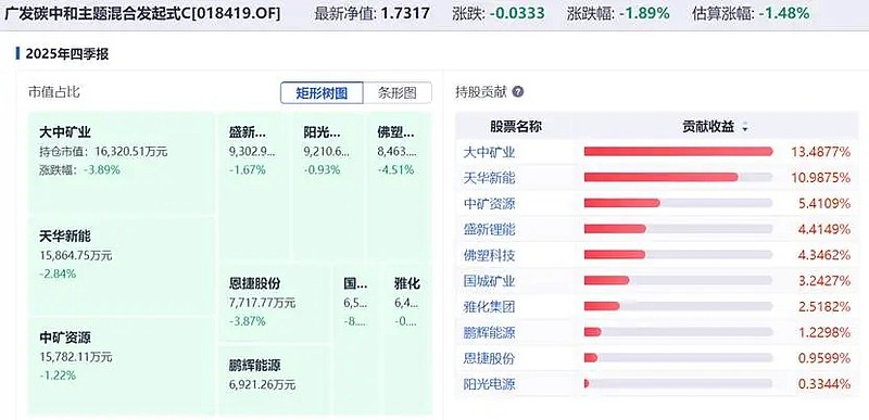 广发碳中和C(018419)聚焦的正是储能产业链,这只基金在2025年四季度有明显的调仓。