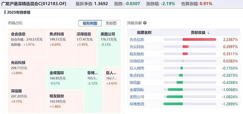 如果说存储产业链代表AI时代的基础设施投资,那么另一只值得关注的广发沪港深精选C(012183),则将目光投向了AI应用,这也是2026年开年以来表现亮眼的另一个方向。