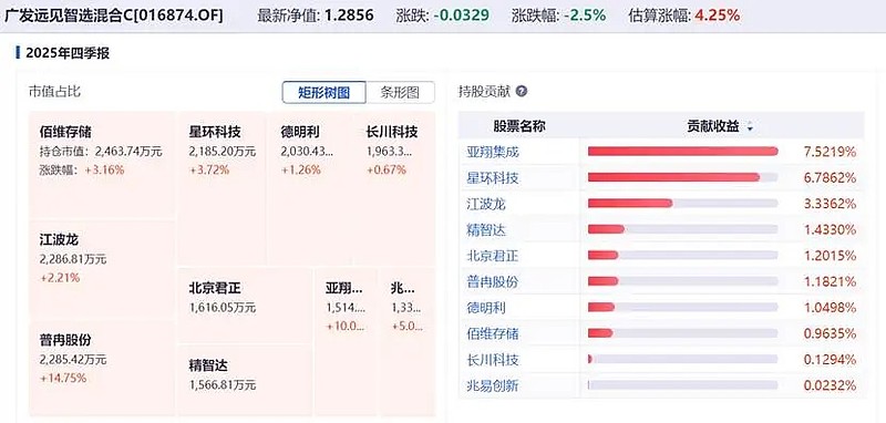 具体怎么配置?从广发远见智选最新披露的四季报来看,唐晓斌把仓位集中在存储和半导体设备上,刻蚀、沉积、键合、良率检测这些"两存"产业链的关键环节都有布局。