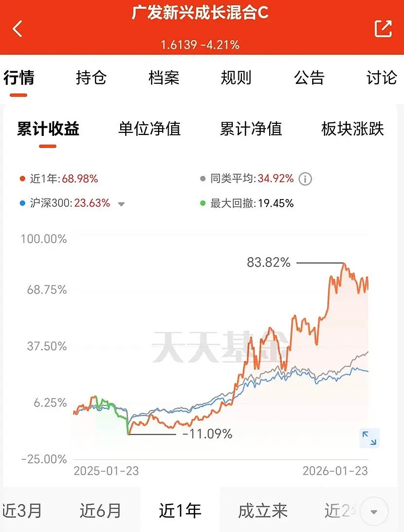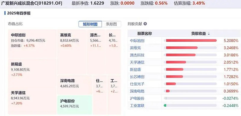算力、存储、应用,三者构成了AI产业链的完整闭环。算力提供计算能力,存储承载海量数据,应用实现商业价值。而广发新兴成长在去年三季度就完成了向算力方向的调仓,较好地抓住了这轮行情。