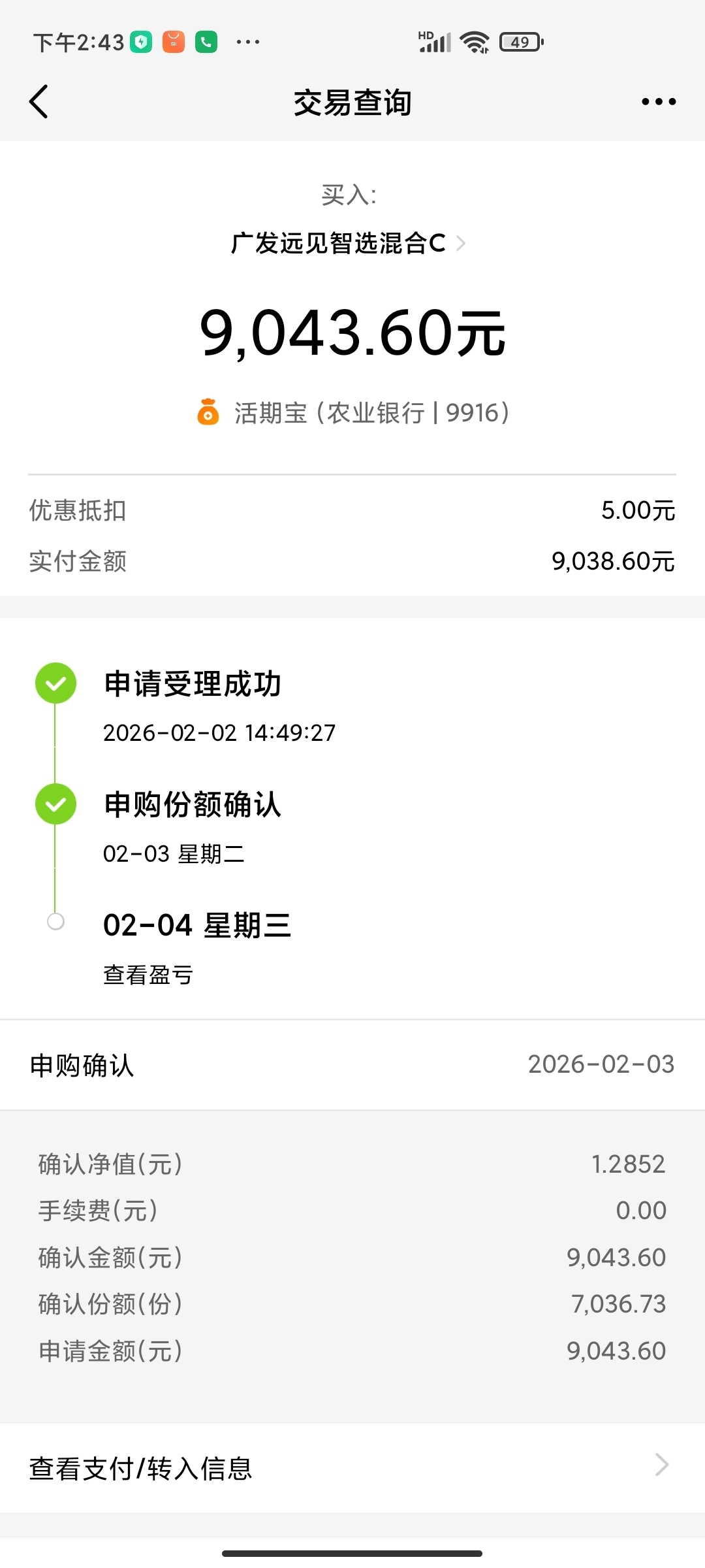 昨天,大跌能入手,肯入手,运气不会差,把活期宝用光了。