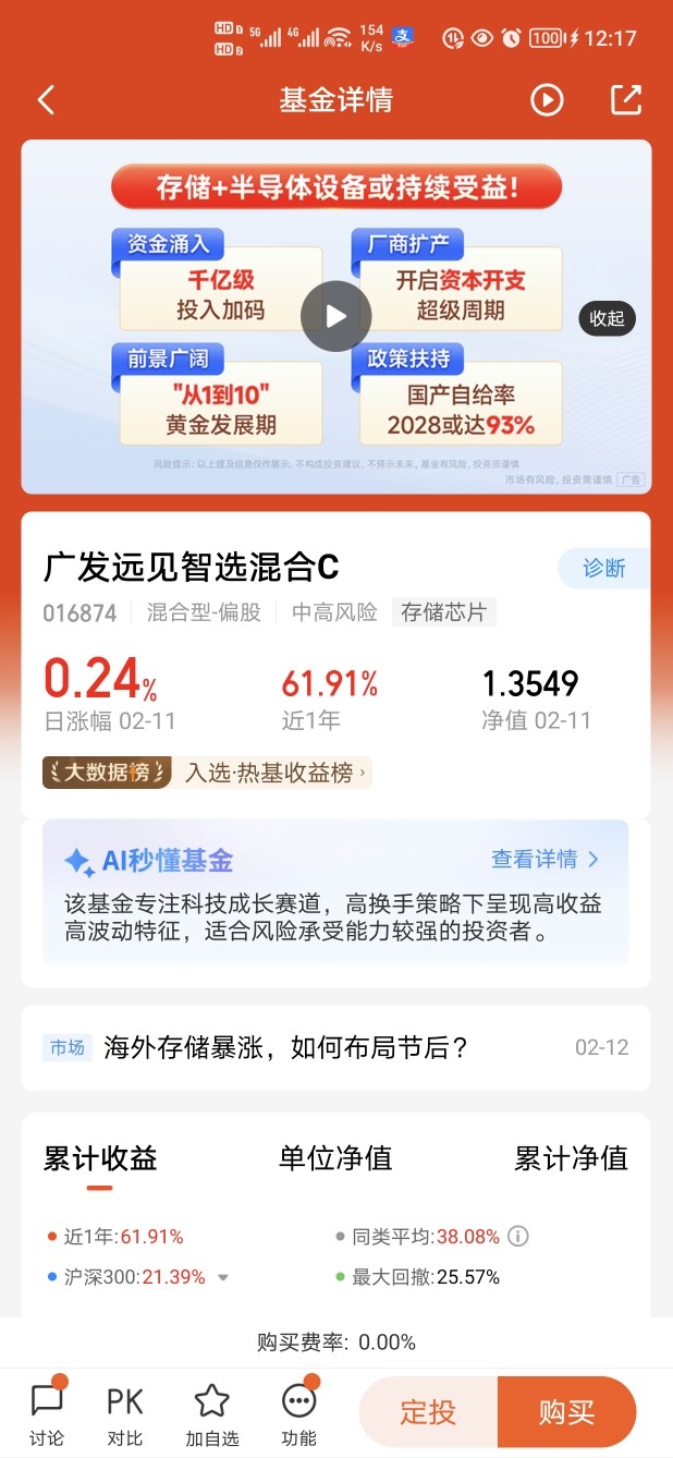 Lumentum拿到数亿美元CPO订单的消息2月11日传开了,2026下半年放量。CPO是光模块的事,跟存储不完全重叠,但整个芯片板块的情绪是联动的。这基仓位里虽然没有光模块,但精智达是做半导体测试设备的,先进封装和CPO都需要测试,产业链会传导