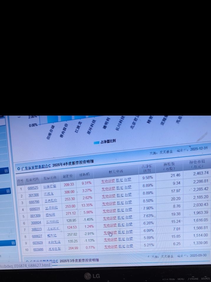 请看昨天(3月6日)016874广发远见智选混合C的前10个重仓股票的涨跌