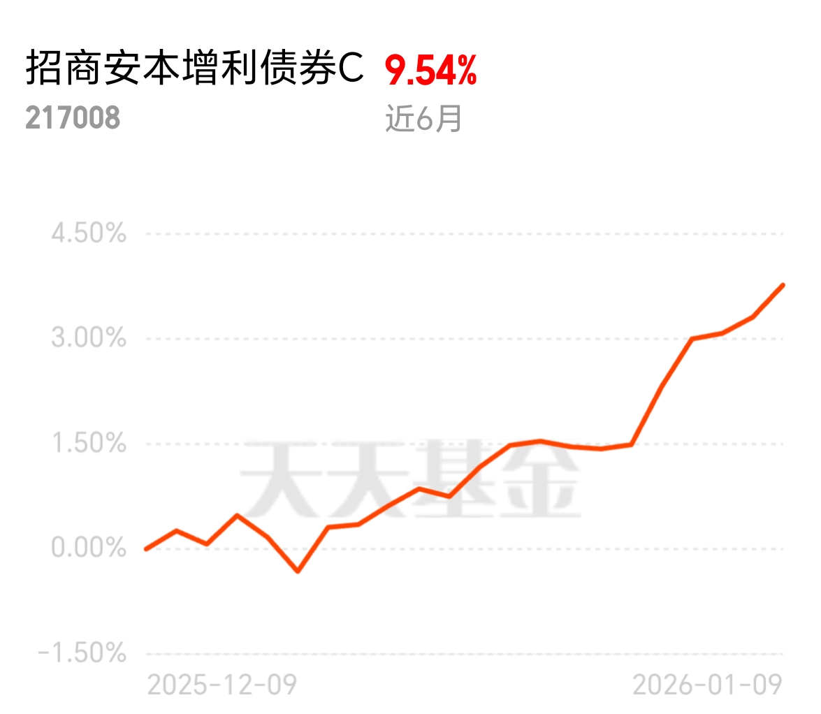 年底资金怕波动?招商安本增利债券 C 给你稳稳的幸福。近 1 年 17.88%,上周五涨 0.45%,连涨 6 天表现超棒,比很多同类固收 + 抗跌能涨,固收打底不用慌。$招商安本增利债券C$