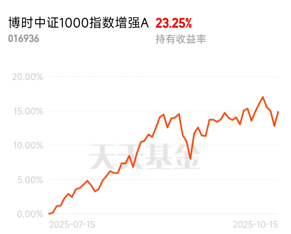 成分股里30%是专精特新企业,业绩增速能到15%,比大盘股的8%高不少,成长力是真的强。$博时中证1000指数增强A$