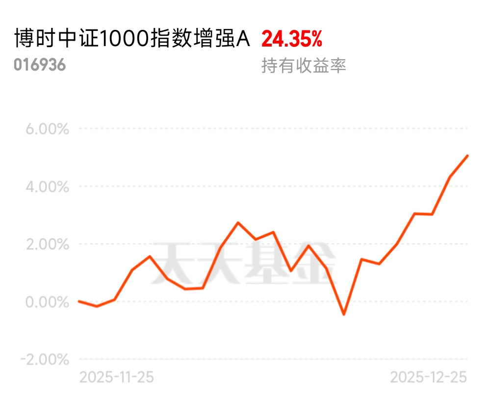 全是小盘成长股,政策力挺中小企业,这基拿着踏实$博时中证1000指数增强A$