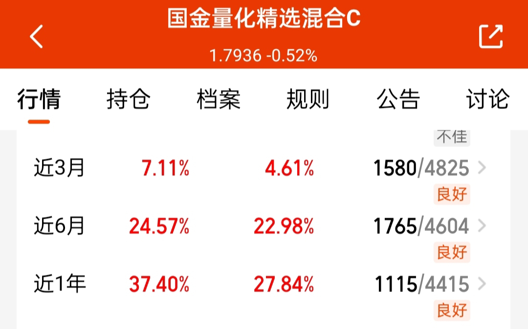 今天怎么走呢,量化基最近适合补仓,拿了些$国金量化精选混合C$ ,限额已经放开了,给机会就抓紧冲吧,长期业绩还不错诶