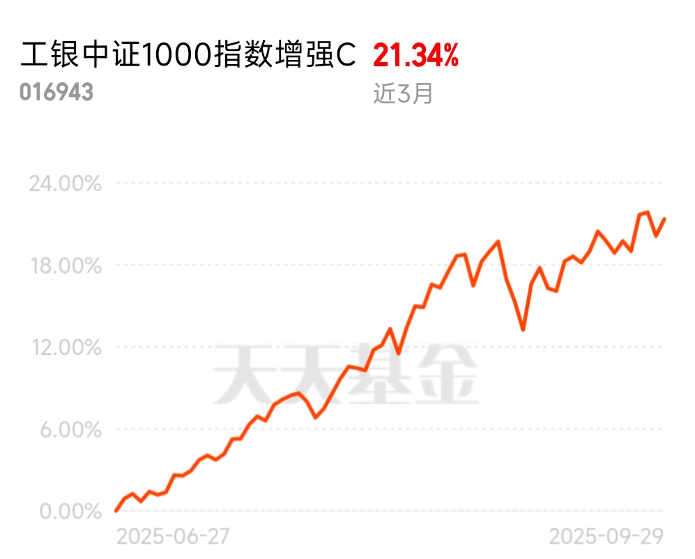 $工银中证1000指数增强C$ ,今年跑赢指数近30个点,表现非常出色,可以密切关注。@工银瑞信基金