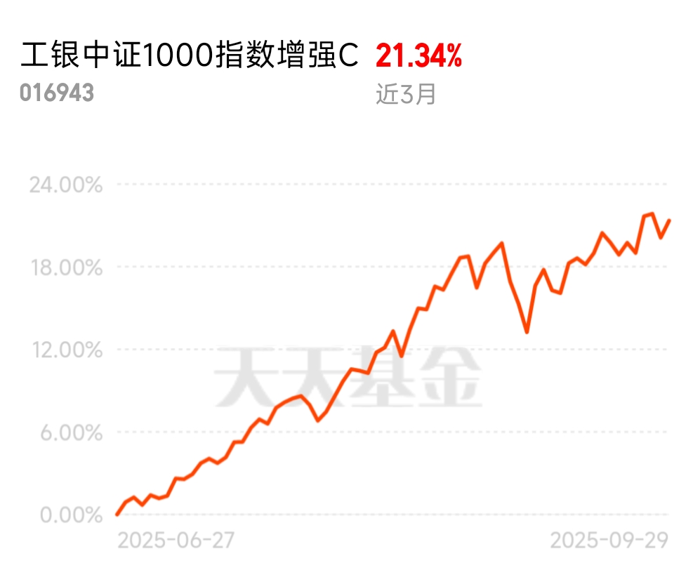 还有个关键原因:$工银中证1000指数增强C$ 的“调整空间”更大。大盘指数成分股相对固定,基金经理想调仓换股、找新机会,限制比较多,但小盘成长指数成分股调整更频繁,一些不符合要求的股票会被剔除,新的潜力股会加进来。这就给了基金经理更多“操作空间”,既能跟着指数喝到行业增长的汤,又能通过替换个股、调整仓位,把超额收益再往上提一提。@工银瑞信基金 @工银瑞信基金