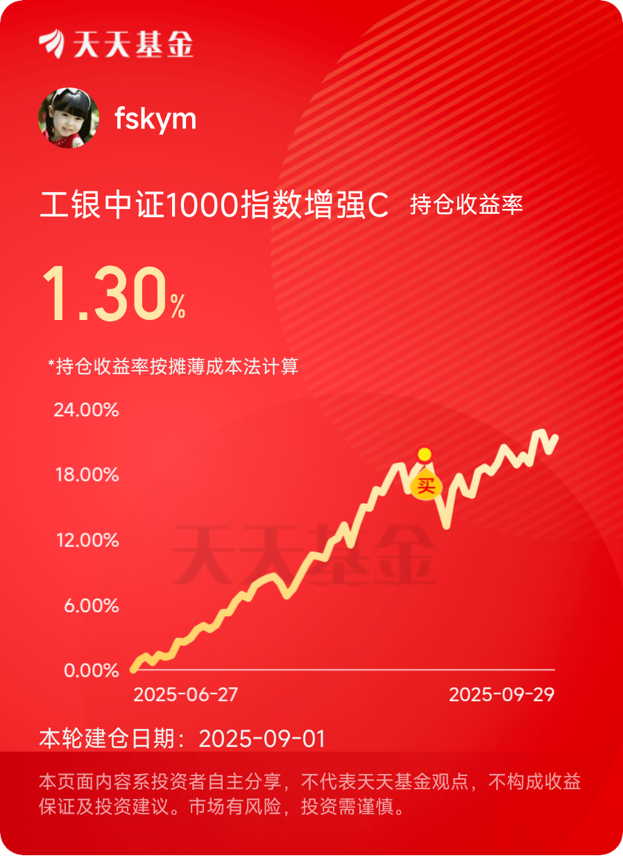 这些小盘股的底气,其实藏在自身阶段里。它们大多处在快速扩张期,要么是在人工智能、生物医药这些新兴赛道里抢份额,要么是在传统行业里搞技术升级,本身就自带“高成长基因”。而且政策还特别给劲儿,像“专精特新”企业里,一大半都在中证1000的成分股里,税收减免、融资支持这些红利一加持,业绩爆发的概率就更高了。@工银瑞信基金