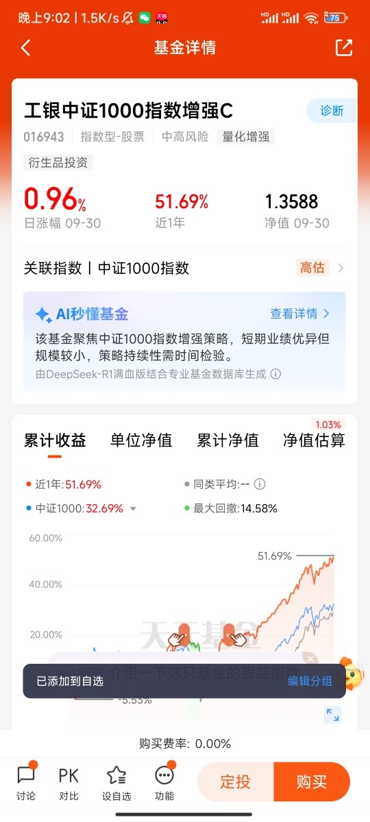 总之,指增基金2020年以来快速发展,量化策略多元化,产品类型多样化,全频道覆盖。大家可以选择$工银中证1000指数增强C$ ,历史业绩表现出色,跑赢指数近三成,可以重点关注。