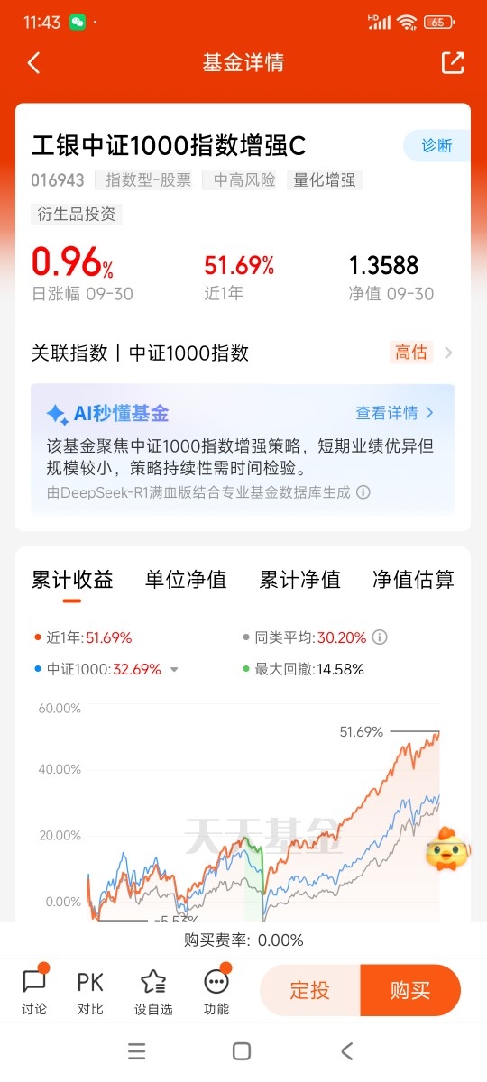 #【有奖】浪漫七夕,收益更 “吸睛”# 指数增强基金以可控风险追求超额收益,是一种“校准过的主动”。它不像纯主动基金那样依赖经理个人判断,而是依靠系统化模型,在指数框架内精细调仓。这种模式在2025年市场结构性机会增多的环境下表现突出,行业/主题类指增基金年化超额中位数也有1.77%。指增产品也受益于公募技术投入加大,人工智能与大数据的应用进一步优化增强策略。2025年三季度以来,小盘股表现强势,半导体等科技板块领涨,但机会不仅限于此。中证1000指数涵盖众多细分行业,成分股盈利复苏刚刚起步。与大盘股相比,小盘股内源性增长更强,对宏观波动韧性更高。整体上,小盘股在国内经济修复与利率下行周期中弹性更优。工银中证1000指数增强基金策略透明、业绩可验证、管理专业。它强调纪律性与风险控制,模型严格约束行业敞口,降低风格漂移。基金经理何顺从业经验丰富,在管基金期间累计回报良好,操作上注重控制非系统性风险。业绩上,基金近半年收益10.81%,近一年超额收益稳固;2025年9月净值创新高至1.3156,显示持续增强能力。综合看,该基金是一款策略清晰、表现稳定的配置工具,适于长期持有。