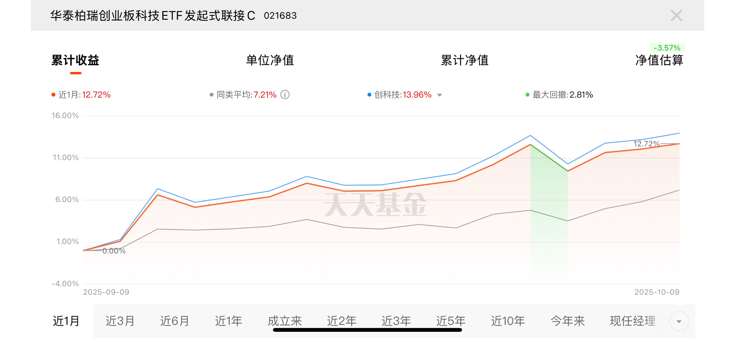 创业板稳中有涨!降准 + 科技金融政策双重利好,想不涨都难。华泰柏瑞创业板科技 C 近一月涨 12.72%,三月涨 53.24%,回调加仓正合适!$华泰柏瑞创业板科技ETF发起式联接C$