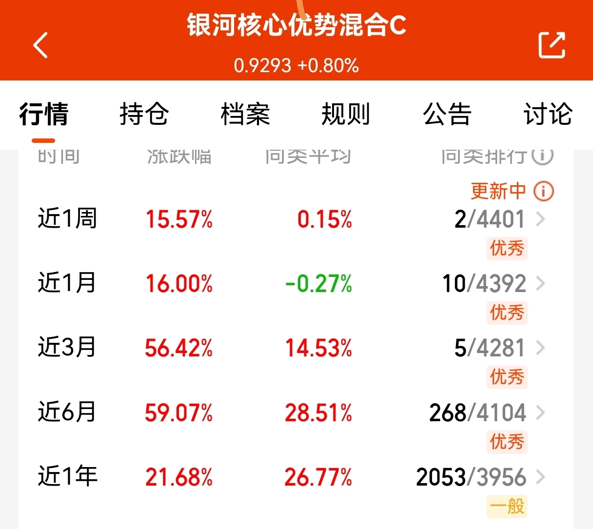 家人们,A股三大指数今日集体下跌,截至收盘,上证指数跌0.39%,深证成指跌1.03%,创业板指跌1.4%,大盘震荡下跌,没想到$银河核心优势混合C$ 竟然红了,还涨了0.8%,太强了,碳中和政策支撑新能源板块,板块利好比较多,估值也不高,上涨空间是有的。