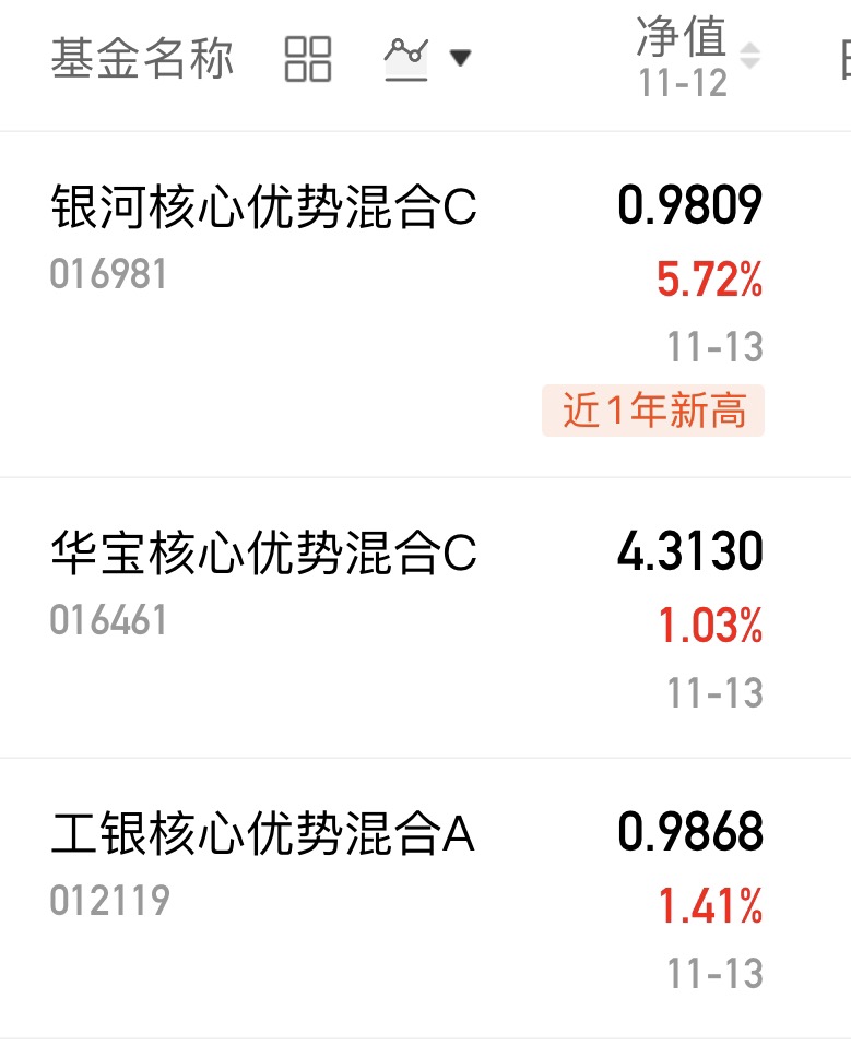 $银河核心优势混合C$ 大涨5.72%,涨幅领先,创近一年新高,能涨抗跌表现优秀