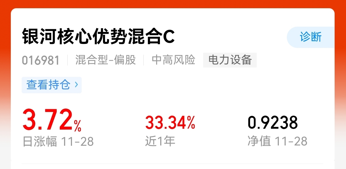 这个也太强了,又是上涨行情,$银河核心优势混合C$ 今日涨幅3.72%,太牛了,新能源产业涵盖固态电池、光伏、储能、氢能、锂电池、风能六大核心领域,且各领域产业链分工精细,如锂电池从上游锂矿到下游整车环环相扣,新能源走势不错。