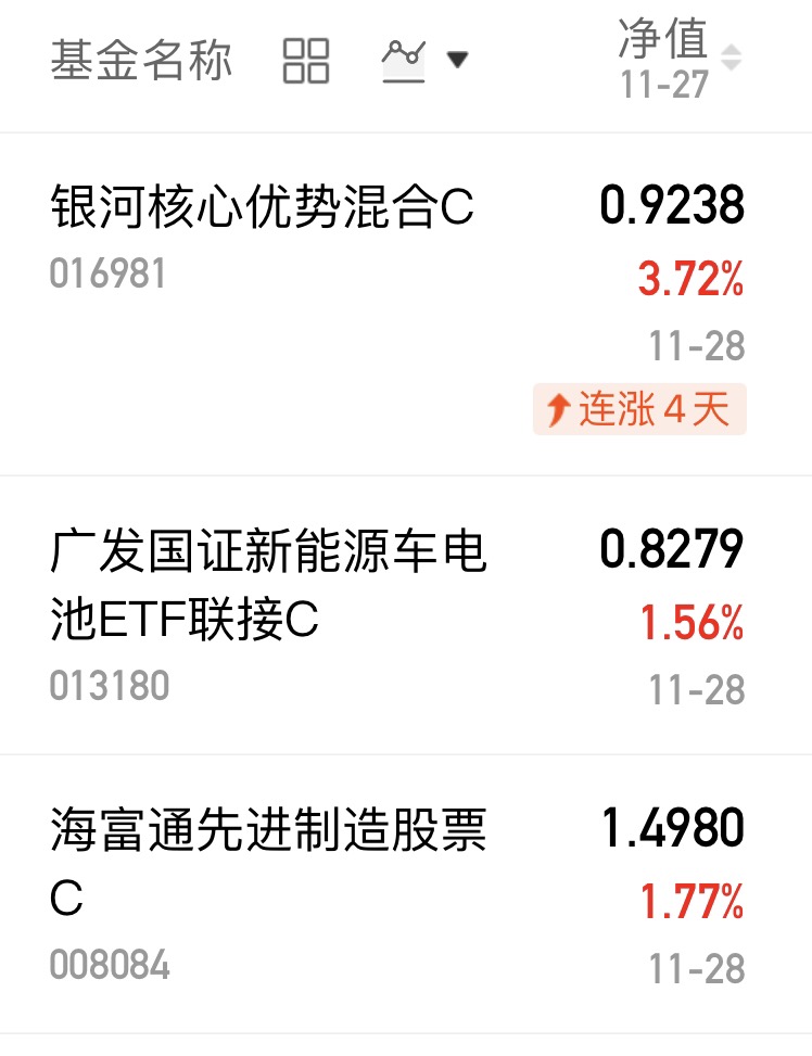 $银河核心优势混合C$ +3.72%,涨幅领先
