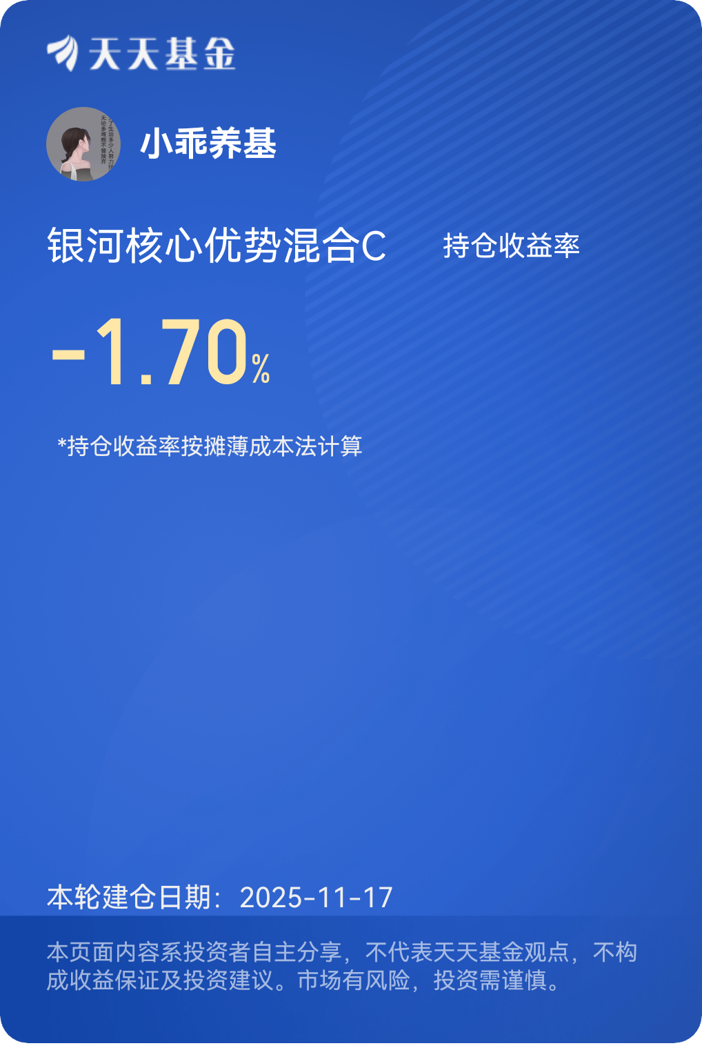 太难了吧,今天看市场持续调整中,还有半个月今年就结束了,还要继续布局吗?当然是要,说不定这个月的下跌是为了给明年留空间,今作,上车$银河核心优势混合C$ 这个基金持仓新能源、电池及电力设备板块,只是短期受制造业投资增速放缓影响,目前储能产品价格走势及新能源车产销数据还是不错的,产业基本面预期也不错,业绩长线还是不错的,近6个月大涨55.12%,同类平均才涨22.97%,跌多反弹更多,今天继续逢低加仓一波了。