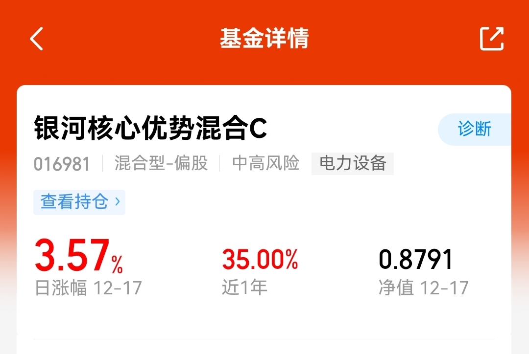 这爆发力真强啊,$银河核心优势混合C$昨晚大涨3.57%,反弹速度惊人,期待今天